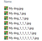 If this check box is on and the file with the same name already exists in the destination folder, the file is deleted before copying (imitating overwriting) it. Otherwise, copying the same file several times gives strange results for some file types. For example, On Windows 10, when coping a JPG file, InDesign always adds the _1 suffix to the base name, like so:
