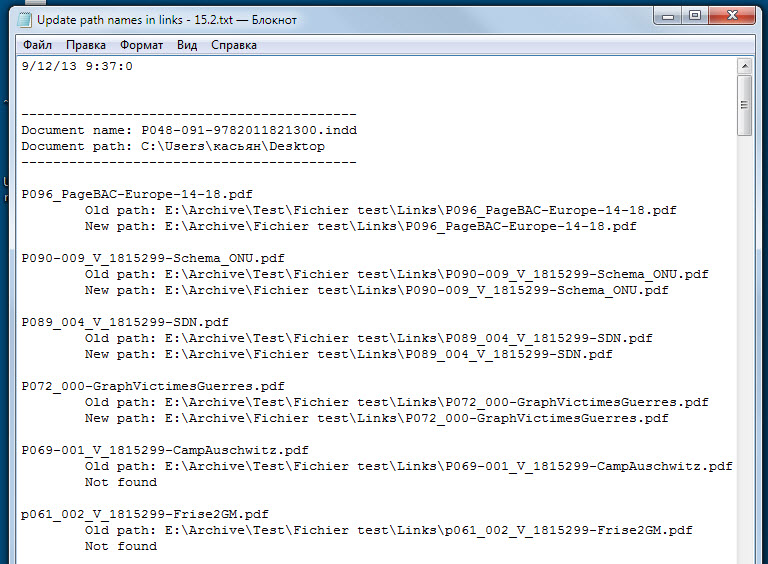 When “active document” or “documents in the selected folder” option is selected, the script opens each document, one by one, without giving any warnings (about missing fonts, links, etc.), updates the links, saves and closes them. If “Backup original InDesign documents” check box is on, the script will make copies of original documents by adding “Backup_” prefix to the initial name. The script never overwrites the files whose name starts with “Backup_”. If the backup file already exist, it creates a new one by adding a consecutive number like so:
